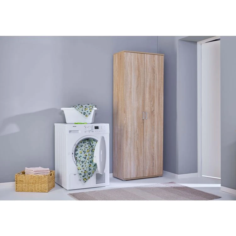 | Informations produit | Armoire, classique, en, panneaux, de, particules., Solide, et, intemporelle., Deux, grandes, portes, pour, un, rangement, maximal, tout, en, hauteur., Cinq, étagères, réglables, en, hauteur. |