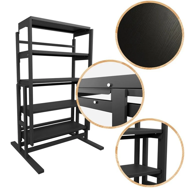 Meilleure affaire 🎉 BLUMIE Etagère Modulable (H125 X L78 X P62 Cm) Convertible En Table – Style Industriel – Couleur Ebène 🌟