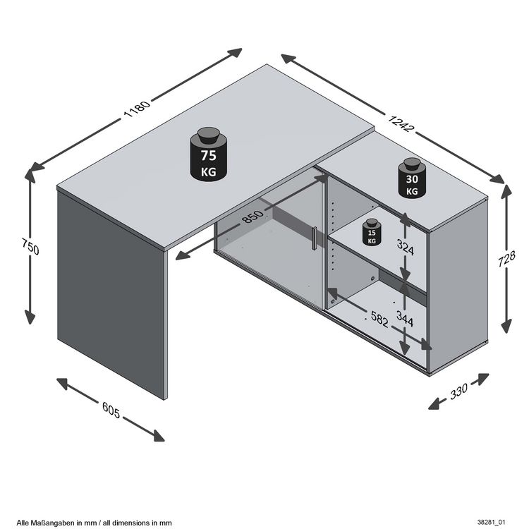 | Informations complémentaires | Ce, Bureau, peut, se, monter, au, choix, avec, en, angle, en, version, gauche, ou, droite, ou, alors, longitudinalement, avec, la, caisson, de, rangement, à, droite, ou, à, gauche, Panneau, de, particules, protégé, par, sa, finition, mélamine, contre, les, rayures, et, l'humidité. |