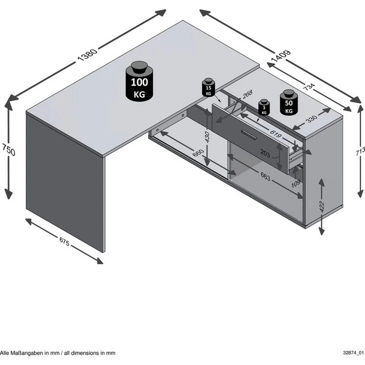 | Le plus produit | Ce, Bureau, peut, se, monter, au, choix, avec, en, angle, en, version, gauche, ou, droite, ou, alors, longitudinalement, avec, la, caisson, de, rangement, à, droite, ou, à, gauche., Panneau, de, particules, protégé, par, sa, finition, mélamine, contre, les, rayures, et, l'humidité. |