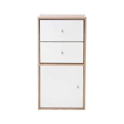 De gros 🌟 Casame Meuble De Rangement 2 Tiroirs Et 1 Porte Décor Chêne – L32 X P30 X H63 Cm ❤️
