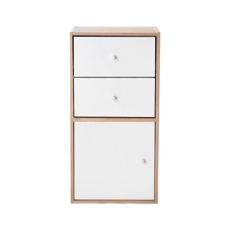 De gros ???? Casame Meuble De Rangement 2 Tiroirs Et 1 Porte Décor Chêne – L32 X P30 X H63 Cm ❤️