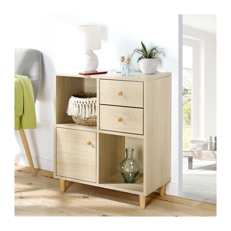 De gros ???? Casame Meuble De Rangement 4 Cases 1 Porte 2 Tiroirs Effet Bois – H 67cm ????