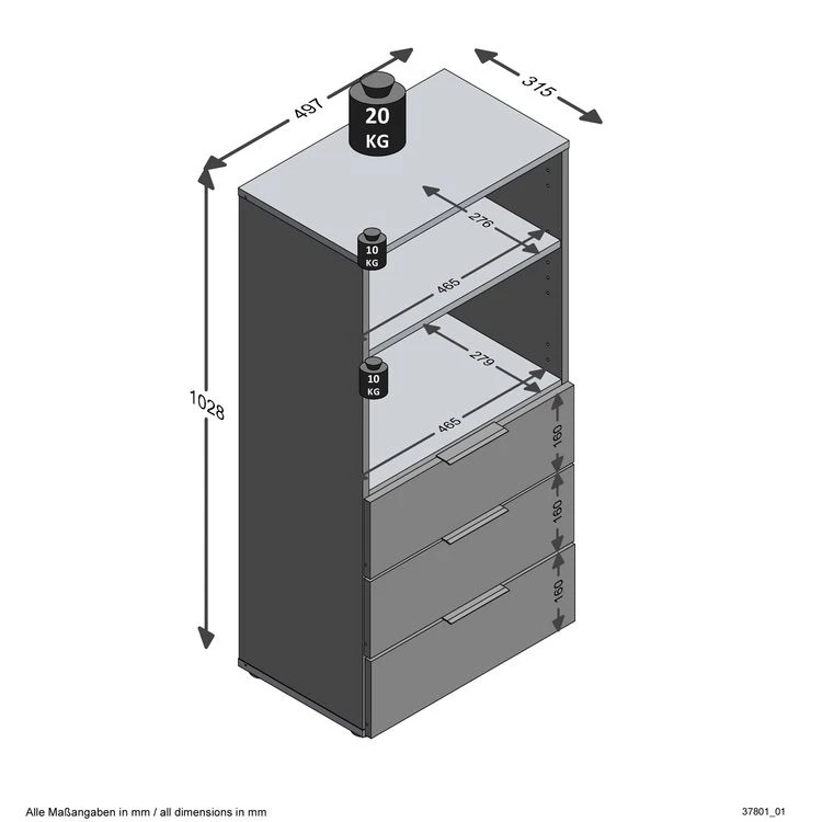 | Meuble à monter soi-même | Petit, meuble, de, séjour, design, à, poser, au, sol, OU, suspendre, 3, tiroirs, avec, 1, tablette, bois, dans, un, compartiment, ouvert., La, surface, de, ce, meuble, en, panneaux, de, particules, recouverte, par, sa, finition, en, mélamine, protège, des, rayures, décoloration, et, rayures., Made, in, Germany, ! |