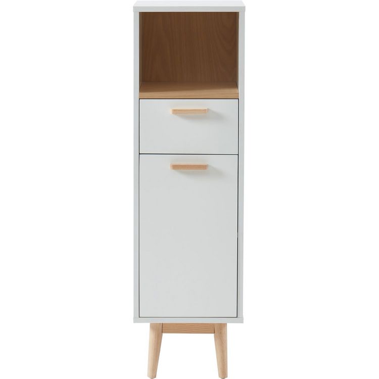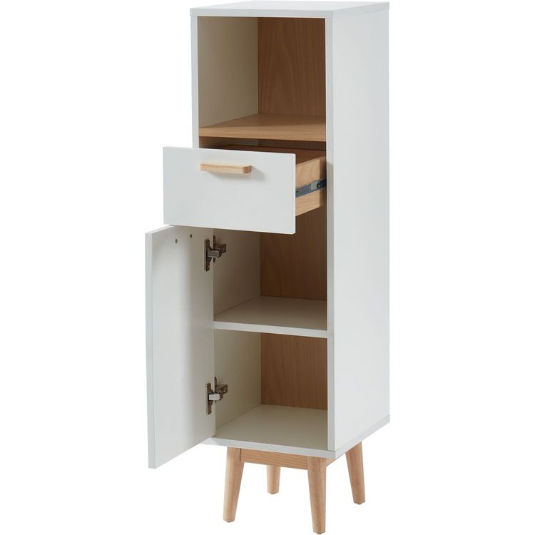 | Descriptif produit | Demi, colonne, pour, salle, de, bain, MILA, -, Structure, MDF, -, Revêtement, mélaminé, bois, clair, et, blanc, -, 1, porte, et, 1, tiroir, -, Poignées, et, pieds, en, bois, massif, de, pin, -, Style, scandinave, -, Dimensions, :, L30, x, P29, 5, x, H103, 5cm |