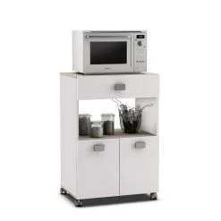 Grosses soldes 🌟 Desserte Micro Ondes 2 Portes 1 Tiroir à Roulettes L42 X P59,6 X H88,3 Cm THYM ❤️