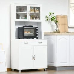 Offres 🛒 HOMCOM Buffet Meuble De Rangement 4 Portes Piétement Acier 100L X 41,5l X 107H Cm 👏