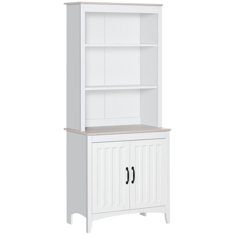 Vente flash ???? HOMCOM Armoire De Cuisine Buffet Haut 2 Portes 3 étagères Plateau MDF Panneaux Blanc Aspect Chêne Clair ????