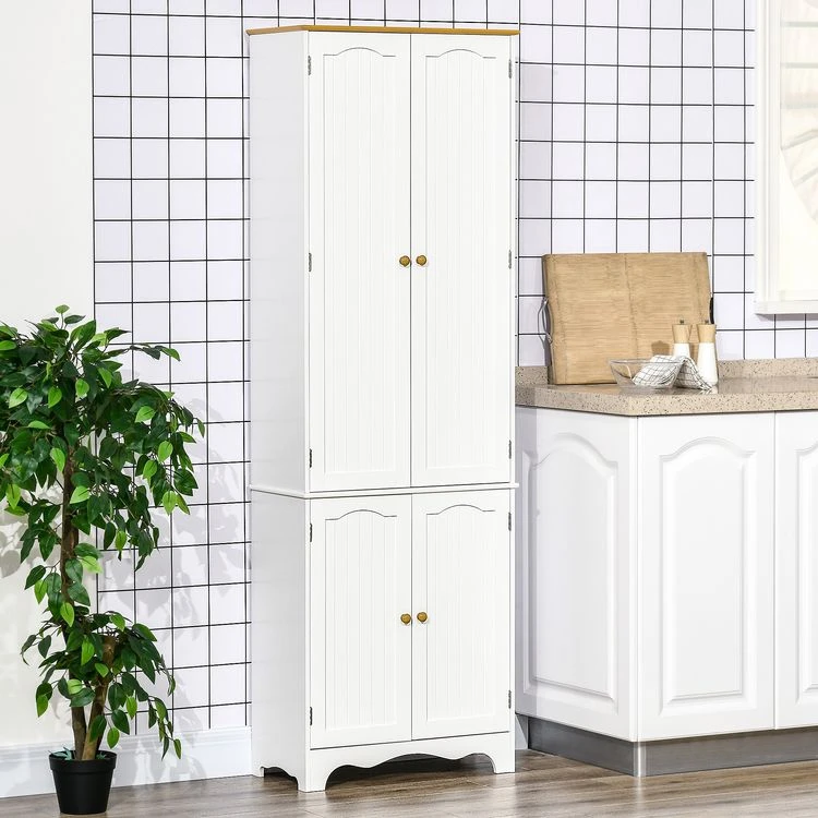 Grosses soldes ❤️ HOMCOM Armoire De Cuisine Contemporaine Multi-rangement 4 Portes 6 étagères Dim. 61L X 30,5l X 183H Cm Bois Pin MDF Blanc 🧨