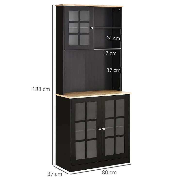 Meilleur prix ❤️ HOMCOM Armoire De Cuisine Multi-rangements 3 Portes Vitrine Verre Avec étagère 2 Niches Grand Plateau MDF 🧨