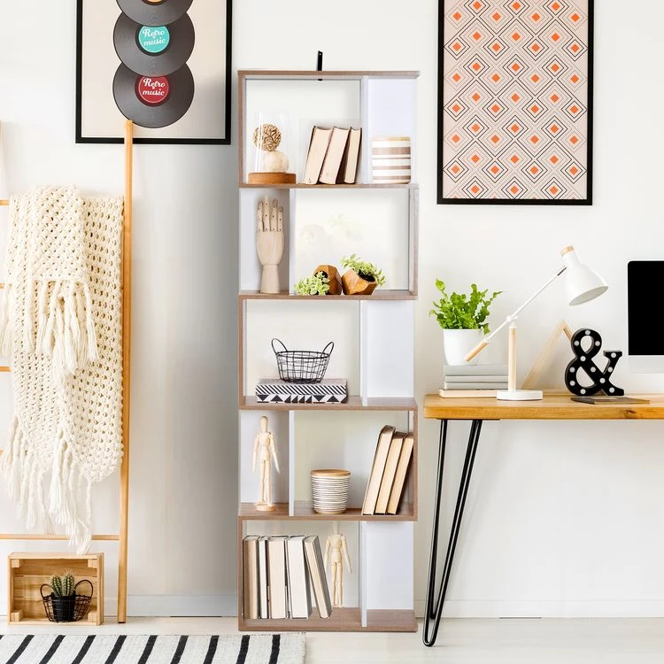 Bon marché 🎉 HOMCOM Bibliothèque étagère Meuble De Rangement Design Contemporain En S 5 étagères 60L X 24l X 185H Cm Coloris Chêne Blanc 🛒