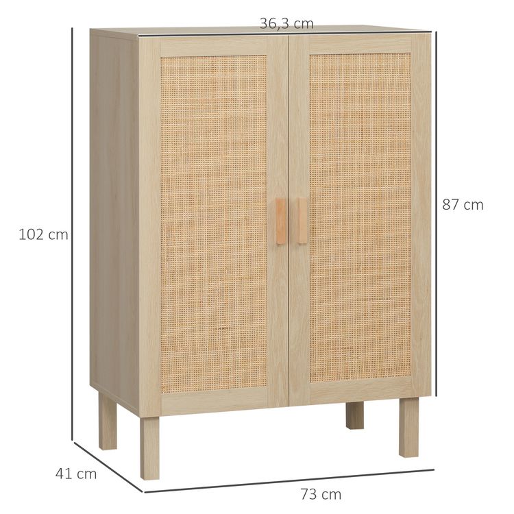 Meilleure vente ???? HOMCOM Buffet 2 Portes 2 étagères Réglables Style Bohème Chic Cannage En Rotin Panneaux Aspect Bois Clair ????
