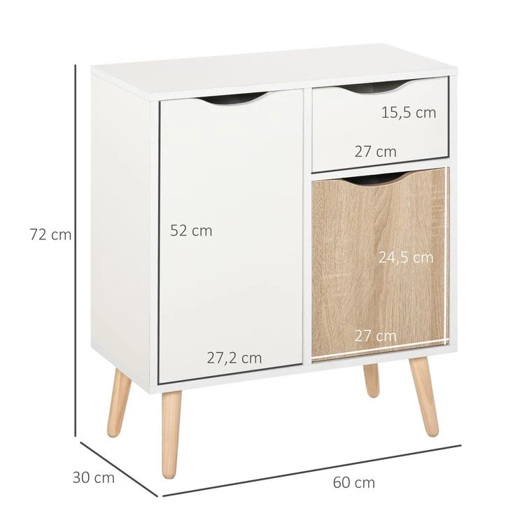 Tout neuf ⭐ HOMCOM Buffet Design Scandinave 2 Placards Tiroir Coulissant Pieds Bois Massif Pin Panneaux Particules Blanc Chêne Clair 💯