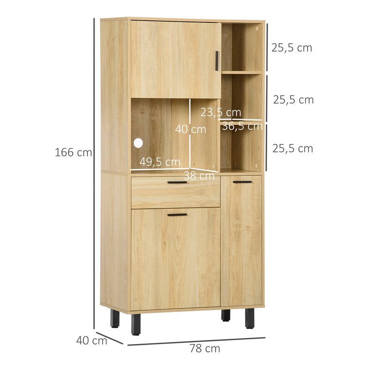 Sortie ✔️ HOMCOM Buffet Haut – Armoire De Cuisine Multi-rangement – 3 Portes, 4 Niches, Tiroir – Piètement Métal Noir Panneaux Particules Aspect Bois Clair ????