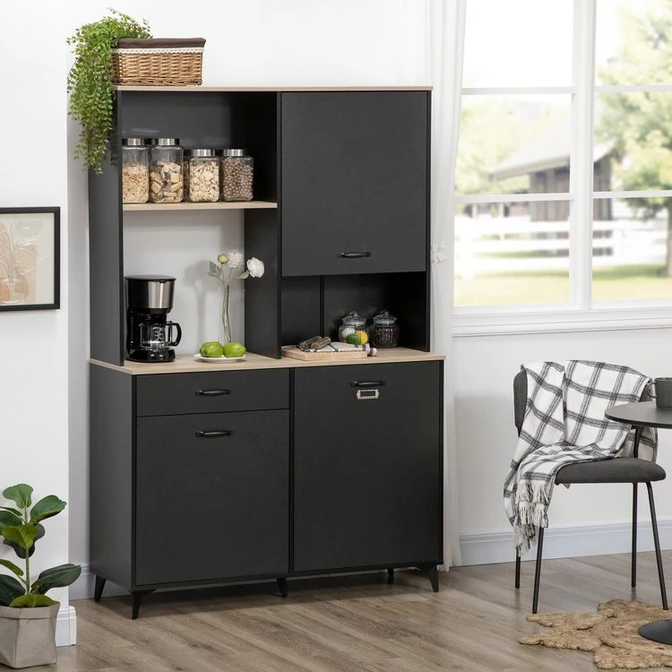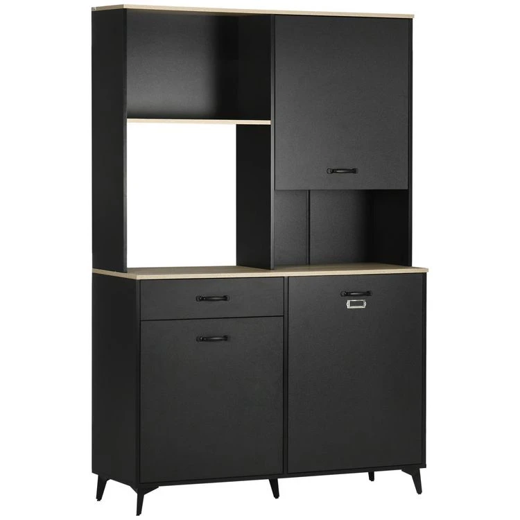 Acheter 😍 HOMCOM Buffet Haut Design Industriel Multi-rangement – 3 Portes Avec étagère, Tiroir, Niche, Grand Plateau – Piètement Métal Noir Aspect Chêne Clair ✨