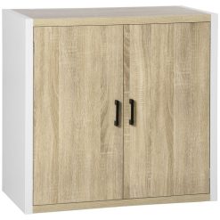Offres ???? HOMCOM Buffet Meuble De Rangement Avec Placard 2 Portes Et 1 étagère Réglable MDF – Blanc Et Aspect Bois – Dim. 80I X 40P X 77H Cm ????