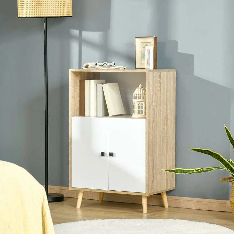 Nouveau ❤️ HOMCOM Buffet Meuble De Rangement Design Scandinave 2 Portes étagère Niche Panneaux Particules Blanc Aspect Chêne Clair 😉