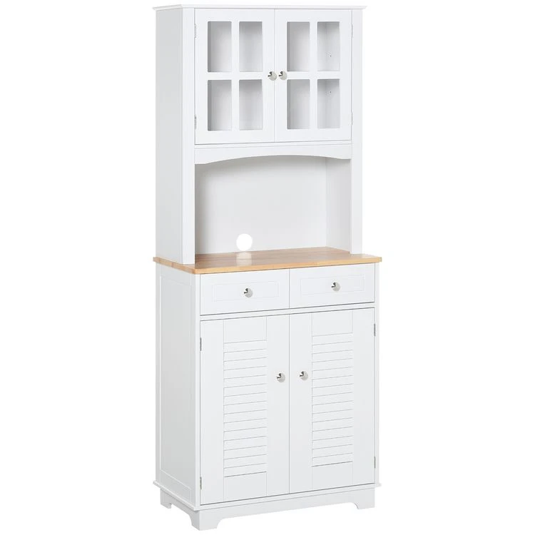Bon marché 😀 HOMCOM HOMCOM Armoire De Cuisine 2 Placards 2 Portes Persiennes Et Acryliques 2 Tiroirs Grande Niche Bois Caoutchouc MDF Blanc 💯