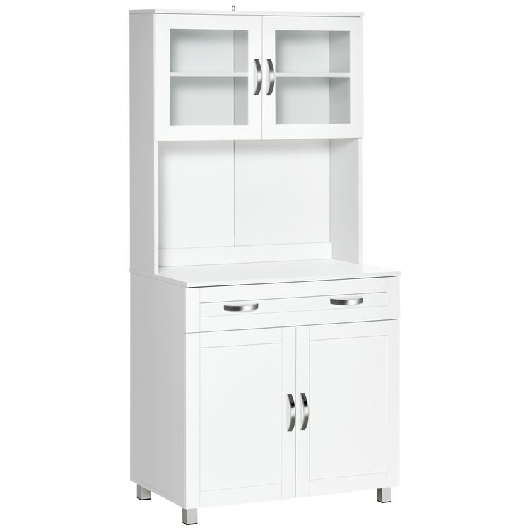 Nouveau ???? HOMCOM HOMCOM Armoire De Cuisine Contemporaine Multi-rangement 2 Placards Portes Grand Tiroir Coulissant Panneaux MDF Blanc ⭐