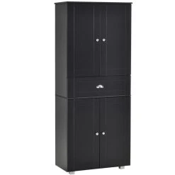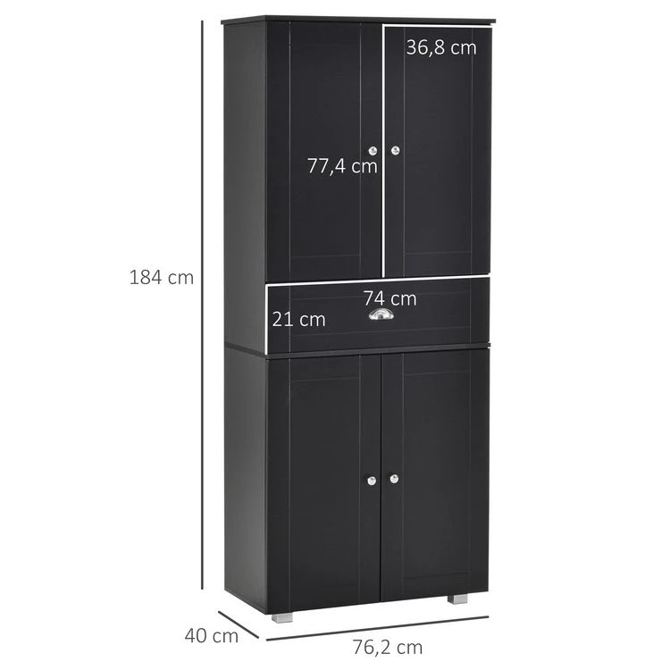Vente flash 🔔 HOMCOM HOMCOM Armoire De Cuisine Contemporaine Multi-rangements 4 Portes + Grand Tiroir Dim. 76,2L X 40P X 184H Cm MDF Noir 🥰