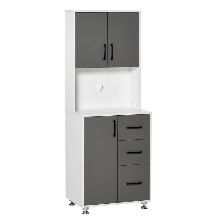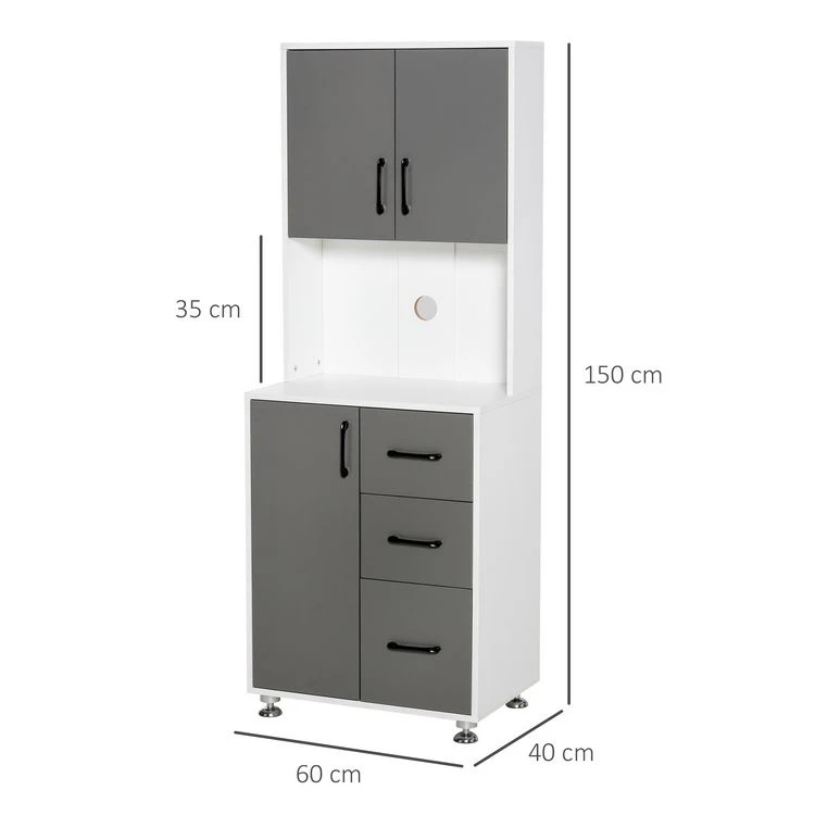 Nouveau ✨ HOMCOM HOMCOM Armoire De Cuisine Multi-rangements 2 + 1 Porte 3 Tiroirs + Grand Plateau Dim. 60L X 40l X 150H Cm Bicolore Gris Blanc 😉