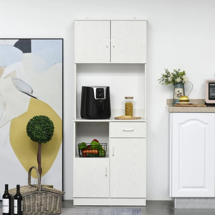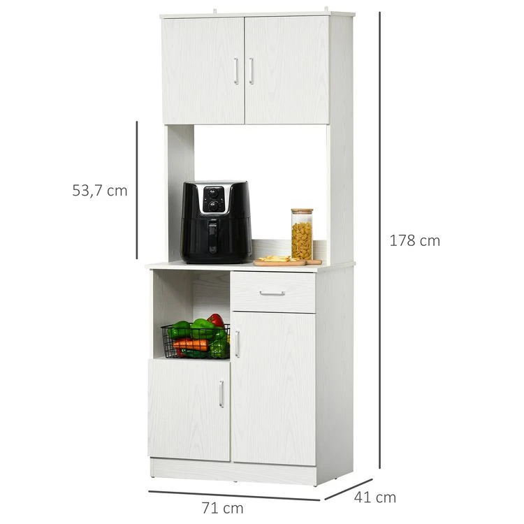 Tout neuf 🤩 HOMCOM HOMCOM Armoire De Cuisine Multi-rangements 4 Portes 1 Tiroirs étagère + Grand Plateau 71 X 41 X 178 Cm MDF Blanc ❤️