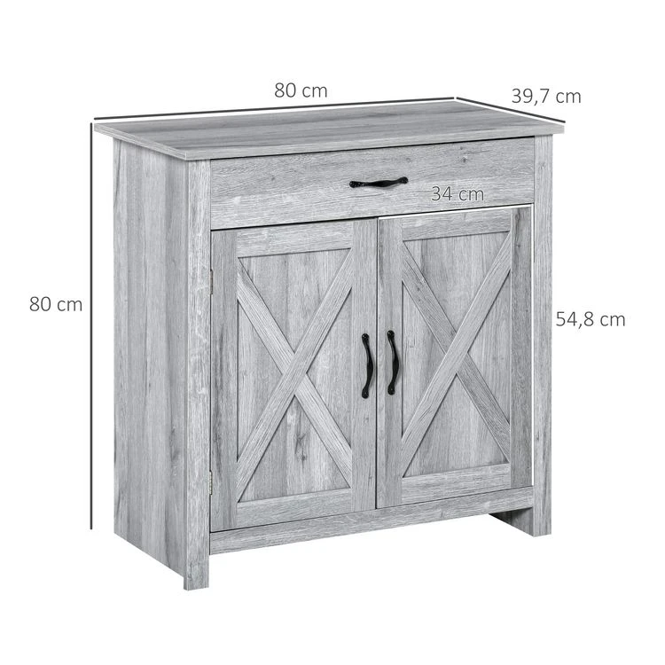 Promo 👏 HOMCOM HOMCOM Buffet 2 Portes Tiroir Style Rural Chic Placard Avec étagère Poignées Métal Noir MDF Panneaux Particules Aspect Bois Gris Clair ⌛