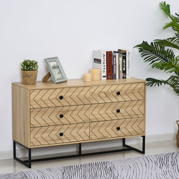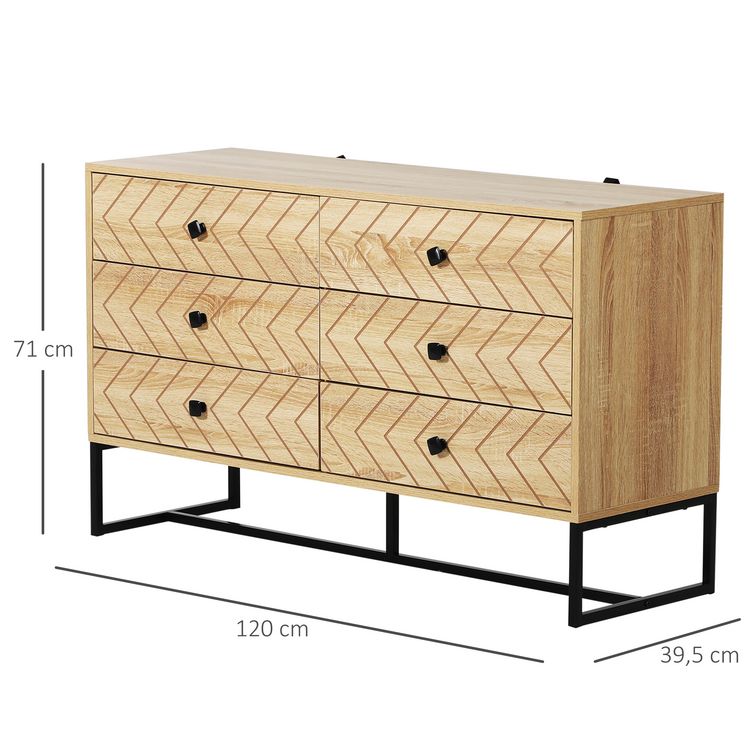 Nouveau ❤️ HOMCOM HOMCOM Buffet Design Style Graphique Façades Placards à Chevrons – 2 Portes Avec étagère, 3 Niches – Métal Noir Panneaux Aspect Chêne Clair ????