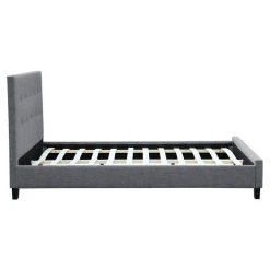 Budget 🛒 Lit Avec Sommier Et Tête De Lit Capitonnée En Tissu Gris Foncé 140×190 Cm AMAURY 🎁