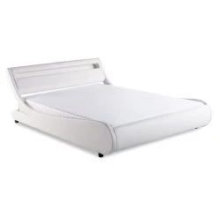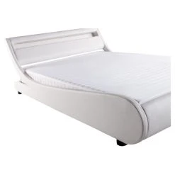 Acheter ✔️ Lit Coffre Avec Sommier Relevable Et Tête De Lit Arrondie En Tissu 160×200 Cm CARVOEIRO 🎉