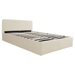 Acheter ✔️ Lit Coffre Avec Sommier Relevable Et Tête De Lit Arrondie En Tissu 160×200 Cm CARVOEIRO 🎉