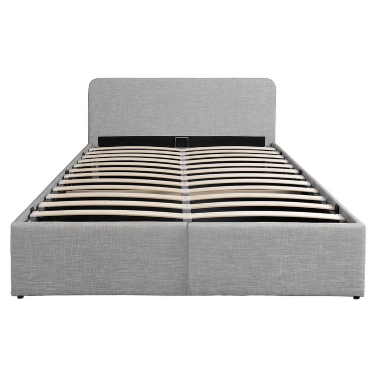 Acheter ✔️ Lit Coffre Avec Sommier Relevable Et Tête De Lit Arrondie En Tissu 160×200 Cm CARVOEIRO ????