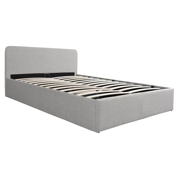 Acheter ✔️ Lit Coffre Avec Sommier Relevable Et Tête De Lit Arrondie En Tissu 160×200 Cm CARVOEIRO 🎉