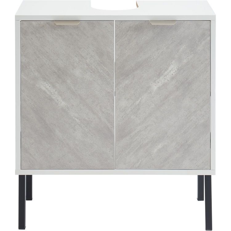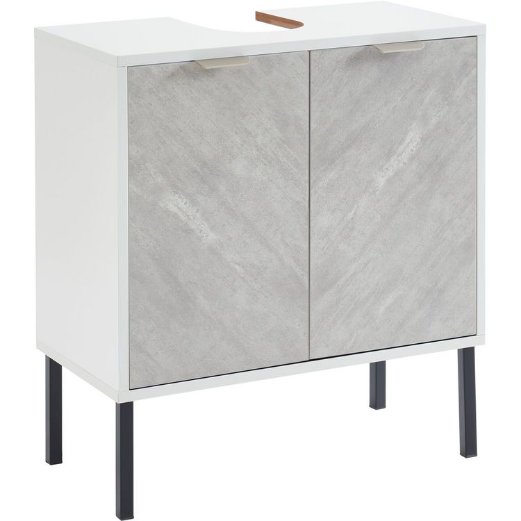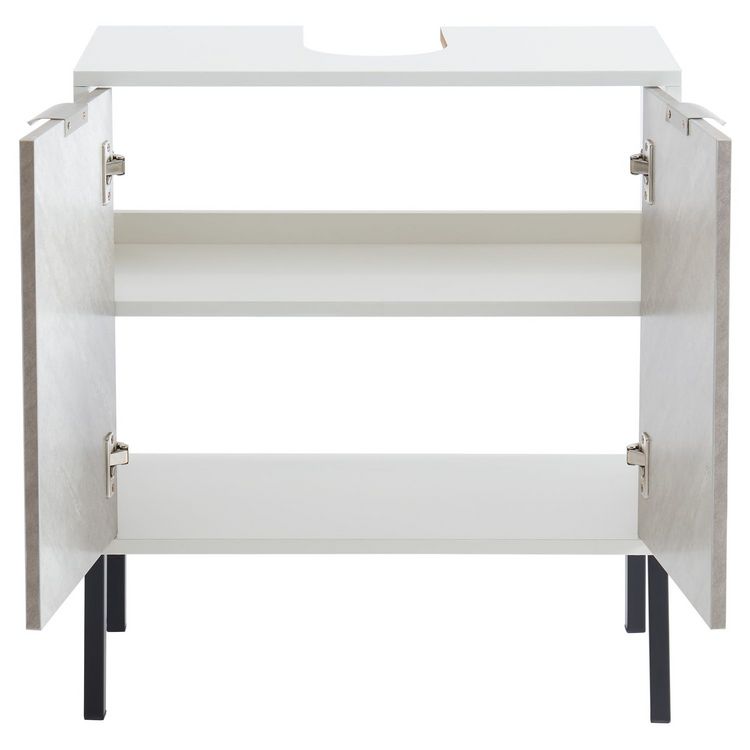| Descriptif produit | Meuble, sous, vasque, pour, salle, de, bain, MAO, -, Structure, MDF, -, Revêtement, mélaminé, blanc, et, béton, gris, clair, -, 2, portes, -, Poignées, en, métal, en, acier, inoxydable, brossé, -, Pieds, en, métal, noir, -, Dimensions, :, L60, x, P29, 5, x, H65cm |
