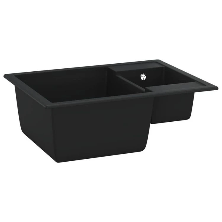 Acheter 🛒 VIDAXL Evier De Cuisine Et Deux Lavabos Trou De Trop-plein Noir Granit 💯